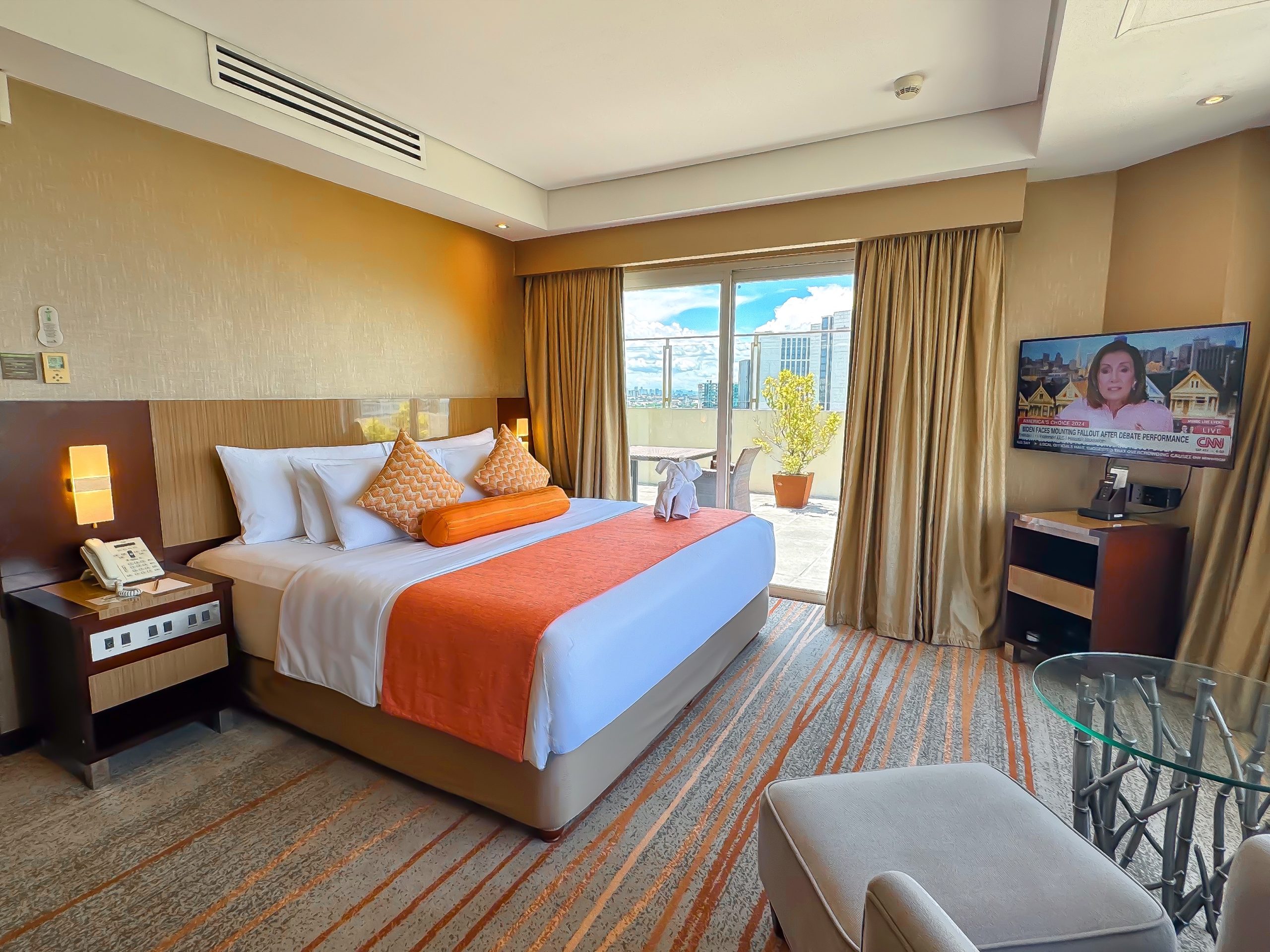 Named as such because of its spectacular view of Laguna de Bay, this suite offers comfortable living. Its sleek interiors provide the important necessities with a bedroom, living area, kitchenette and patio.
